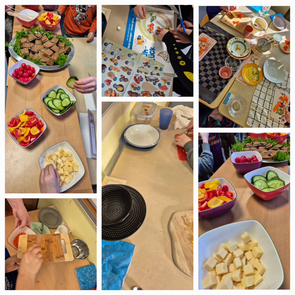 Einen spannenden Tag rund um die Themen Ernährung, Bewegung und Verantwortung konnten die Kinder der 3a im Rahmen des Projekts “Mehr bewegen – besser essen” erleben. Zum Frühstück wurden fleißig Piratenschiffchen gesteckt, anschließend ging es um gesunde und weniger gesunde Lebensmittel und wie viel man von welchen Lebensmitteln am Tag zu sich nehmen sollte. Die Kinder machten sich Gedanken über unsere Mahlzeiten und konnten eigene zusammenstellen. Nach einem Exkurs zum Thema Verantwortung für die Natur, wurde sich in der Sporthalle kräftig bewegt. Der Projekttag endete mit einem leckeren, ausgewogenem Mittagessen – inklusive Nachtisch. Beides durften die Kinder selbst zubereiten. In der Feedbackrunde gab es von den Kindern nur positive Worte für die Projektleiter und die Projektpatin. Sie würden nichts an dem Tag ändern wollen. Es war also ein gelungener Tag, an den sich die Klasse gerne erinnern wird.