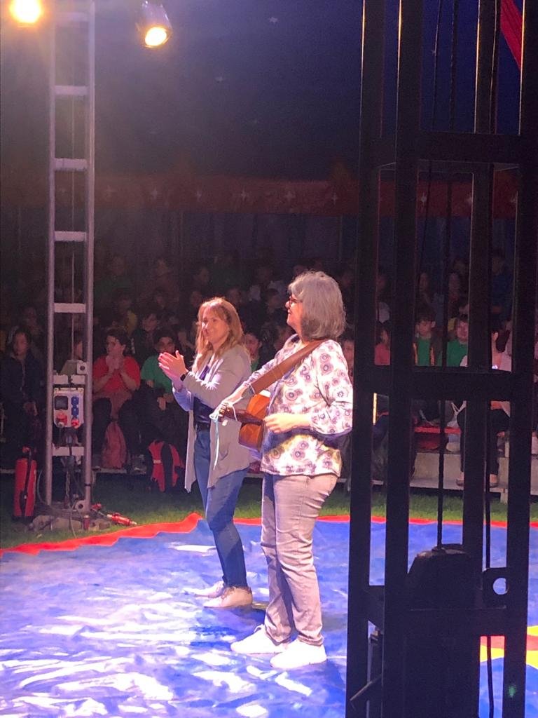 Klassenweise durften dann alle über 300 Kinder in das Zirkuszelt eintreten. Die Zirkuswoche begann natürlich mit dem Schullied und einem Zirkuslied.